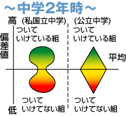 中学2年生になる手前の段階で、成績の人数分布に変化がでます。上位も下位も少人数、平均点付近に位置する人数が一番多い公立中学とは正反対に、私国立中学では徐々についていける組とついていけない組に分かれてきます。この時期に、英語・数学のどちらかに学力低下が見られると、かなりこの先が大変で、とりかえしのつかない事になります。「小学校の時に週に5、6回塾通いしていたので、中学校に行ってまで塾通いはかわいそう」のお気持ちはよくわかるのですが本当にかわいそうなのは授業についていけなくなってから「これなら中学受験なんてしなければよかった」とお子さんに思わせ、果てはお母さん自身が思ってしまうことです。ファスタの本領を発揮するタイミングを逃さないでください。